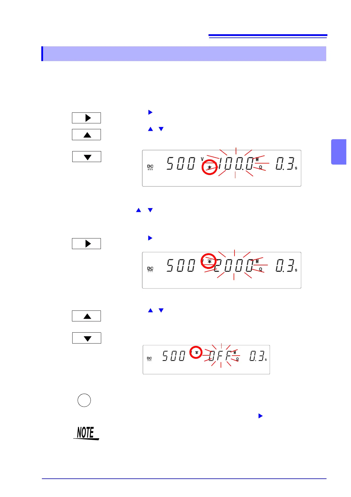<Ex.> Set to 2000 MΩ.