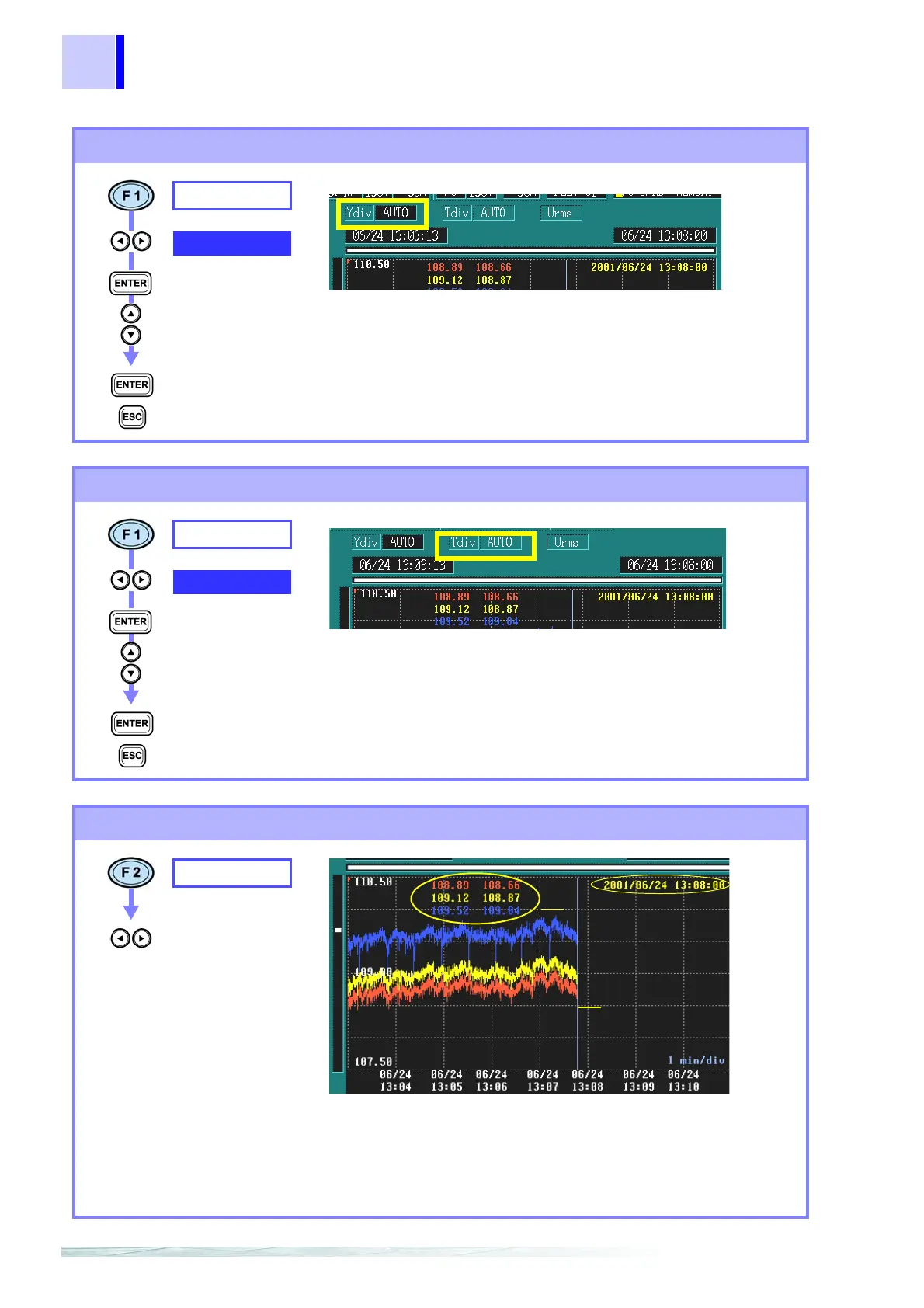 AUTO scaling is used during recording. This cannot be