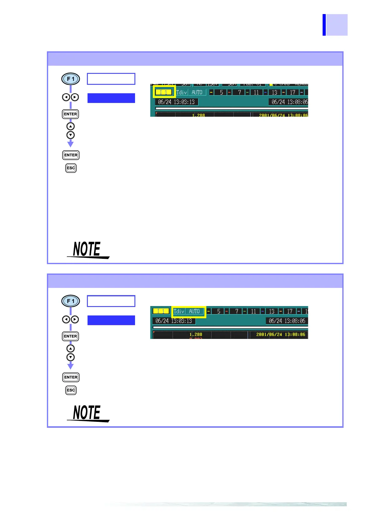 AUTO scaling is used during recording. This cannot be