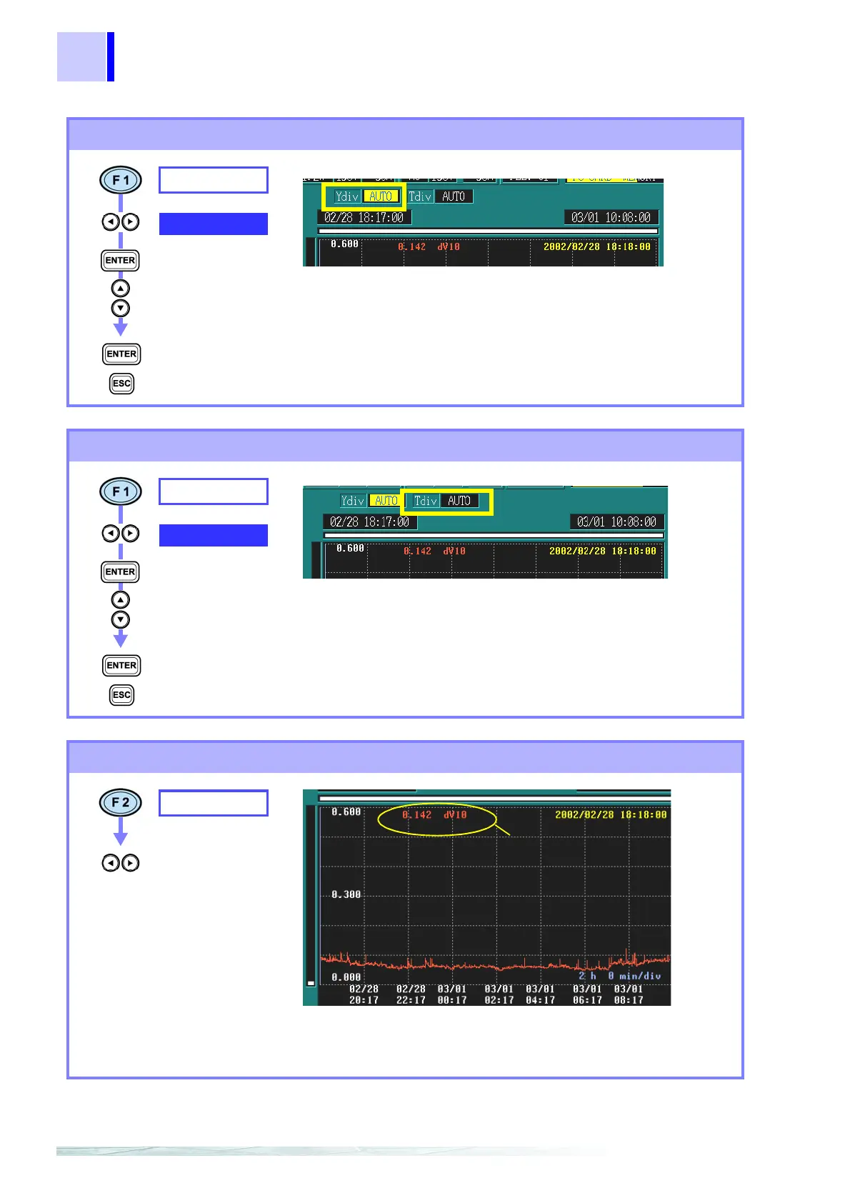 AUTO scaling is used during recording. This cannot be