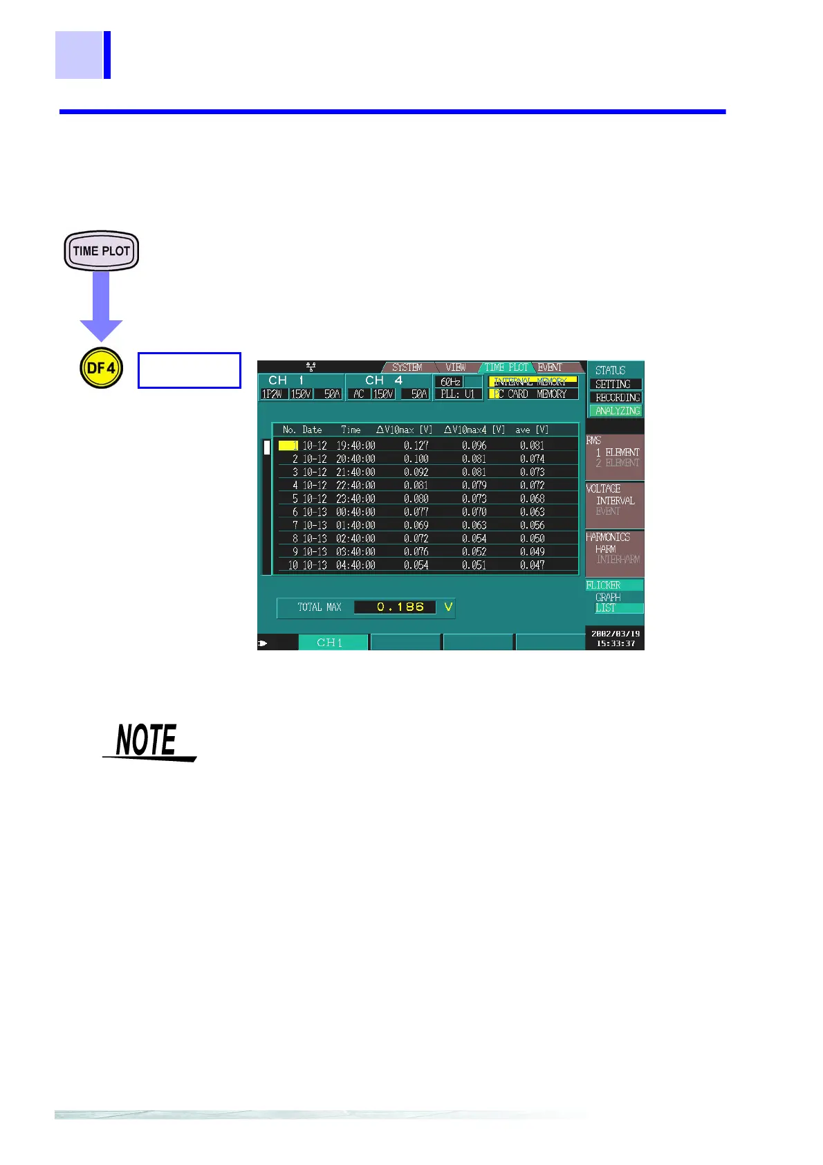 ΔV10 is selected for flicker in [SYSTEM]-DF2