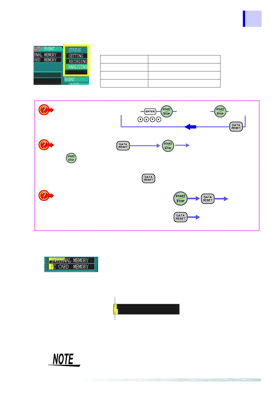 Pressing erases all data stored in internal memory.
