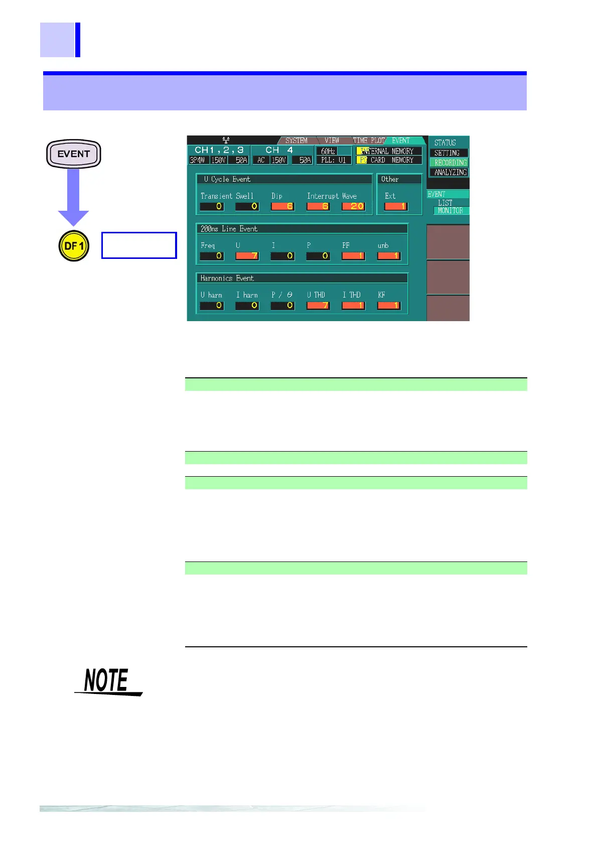 [RECORDING], event monitoring starts after first clearing all events dis-