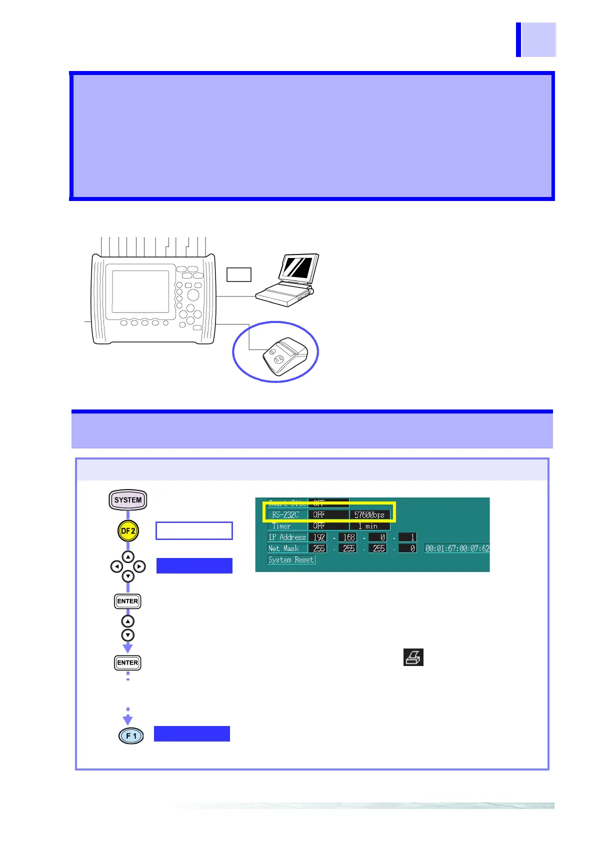 1. Set the RS connection point to PRINTER.