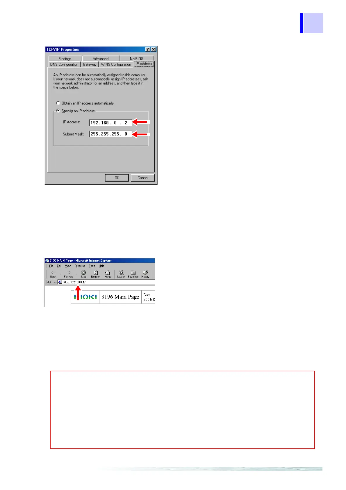 • Verify that you set the IP address and subnet mask.