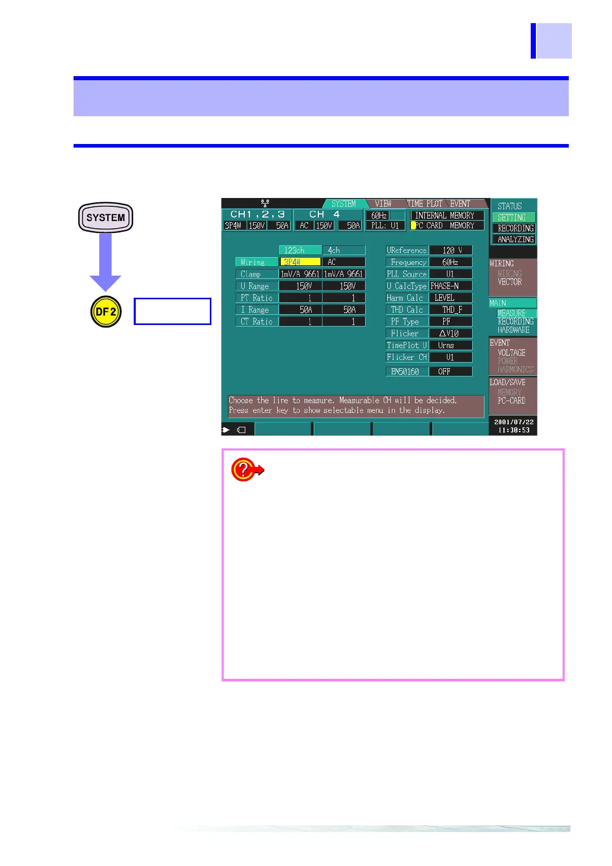 ❖ Voltage recording method settings (page 56)
