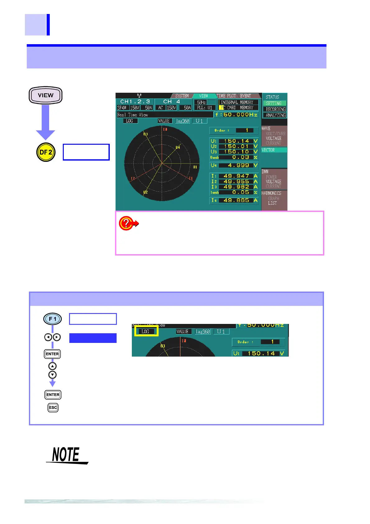❖ Changing the RMS value/phase angle display (page 71)
