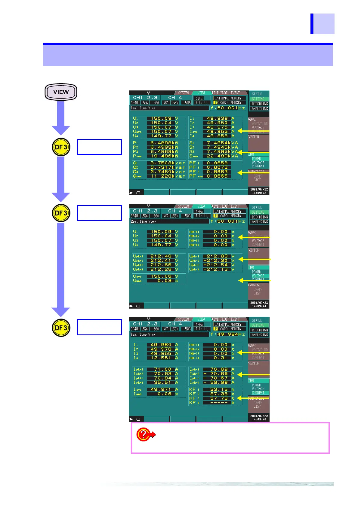 Example: 3P4W (three-phase four-wire) 4-channel DMM display
