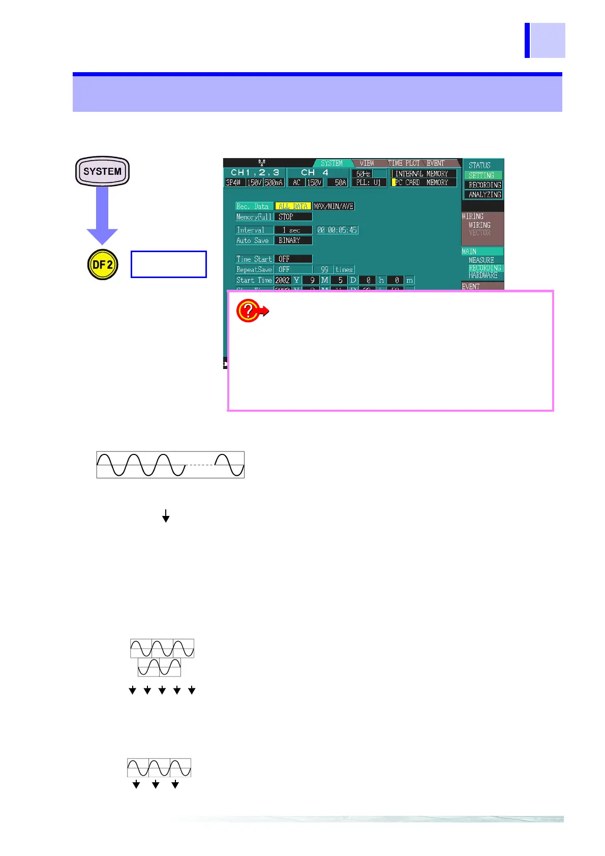 Time series graph for TIME PLOT-DF1[RMS], TIME PLOT-DF3[HARMONICS]: