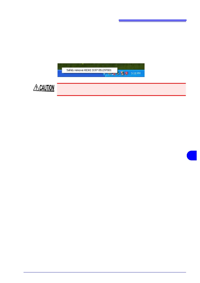 When disconnecting a USB cable between the instrument and a running