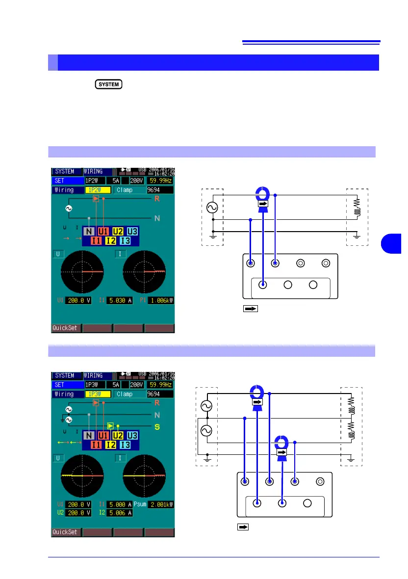 These examples use the R S T phase names and TYPE 1 (HIOKI) phase
