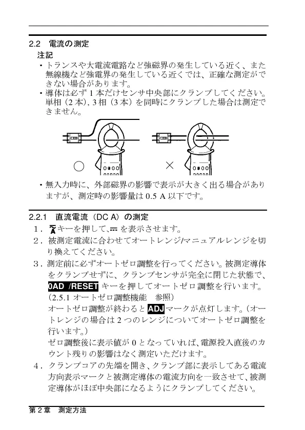 3.測定前に必ずオートゼロ調整を行ってください。被測定導体