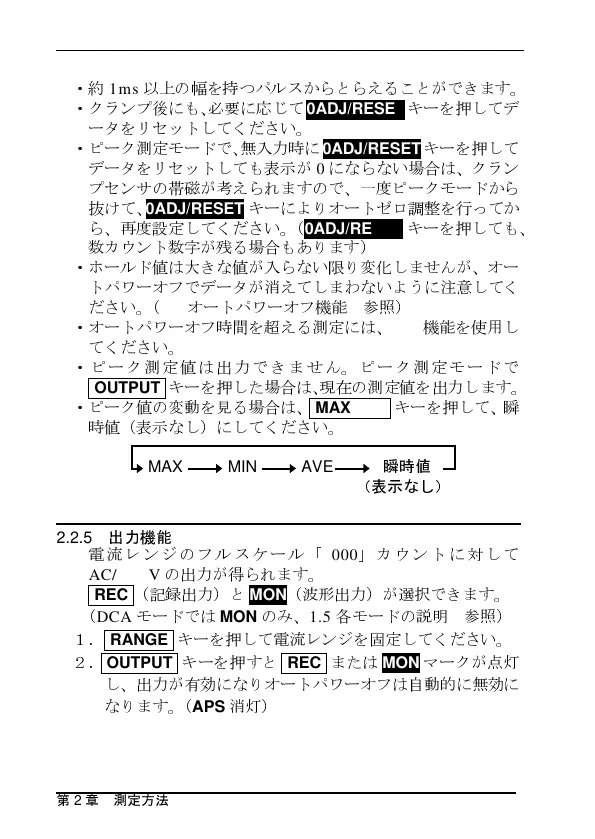 ・ピーク測定値は出力できません。ピーク測定モードで