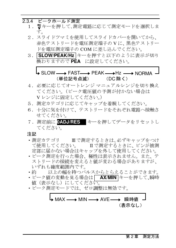 1. キーを押し測定電路に応じて測定モードを選択しま