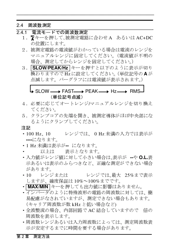 2.被測定電路の電流値がわかっている場合は電流のレンジ