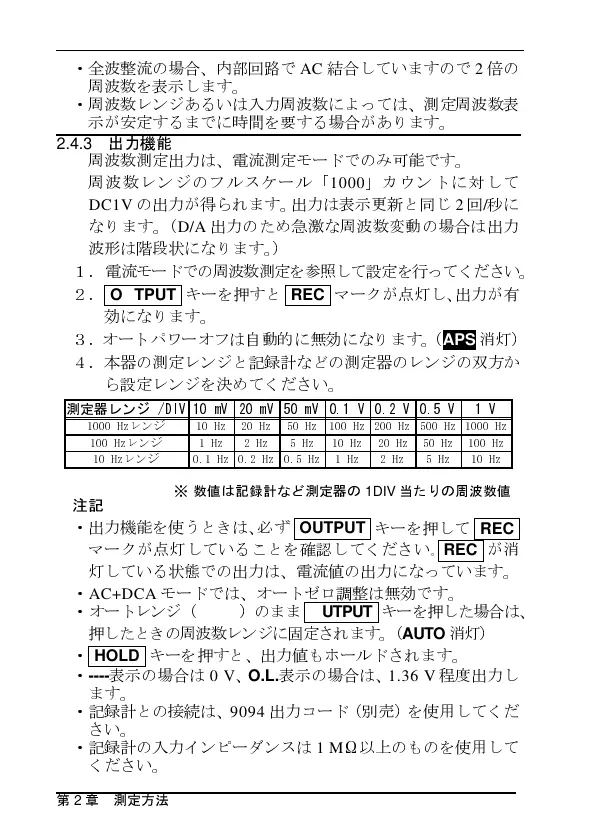 ・周波数レンジあるいは入力周波数によっては、測定周波数表
