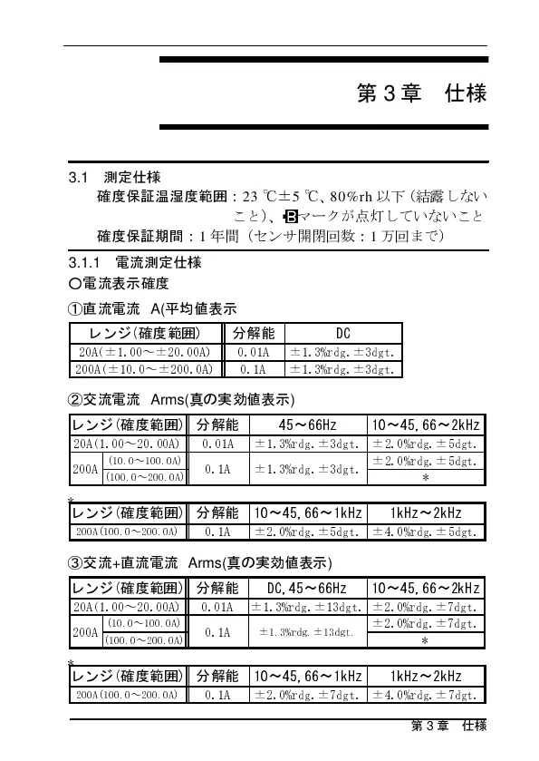 20A(±1.00~±20.00A) 0.01A ±1.3%rdg.±3dgt.