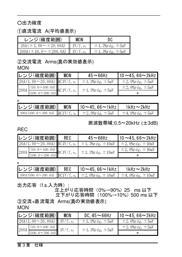 20A(1.00~20.00A) AC1V/f.s. ±1.3%rdg.±5mV ±2.0%rdg.±5mV