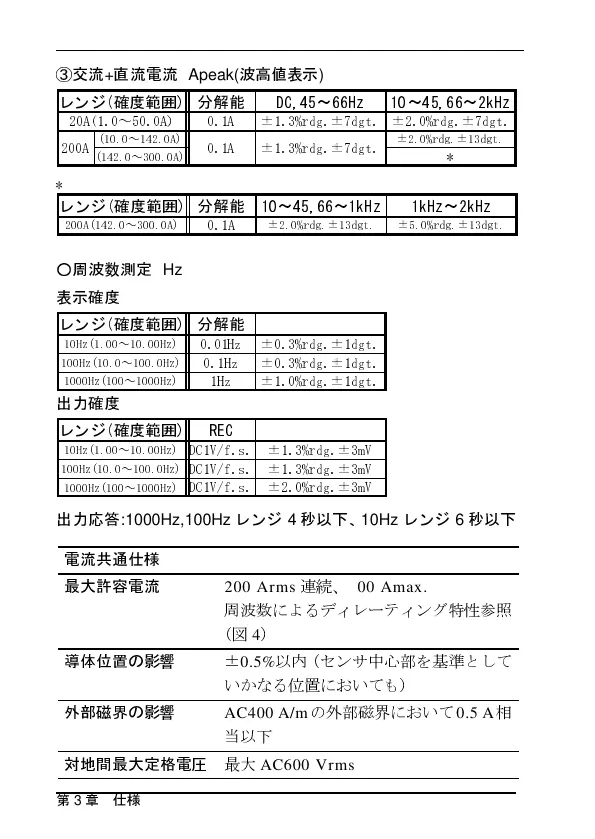 レンジ(確度範囲) 分解能 DC,45~66Hz 10~45,66~2kHz