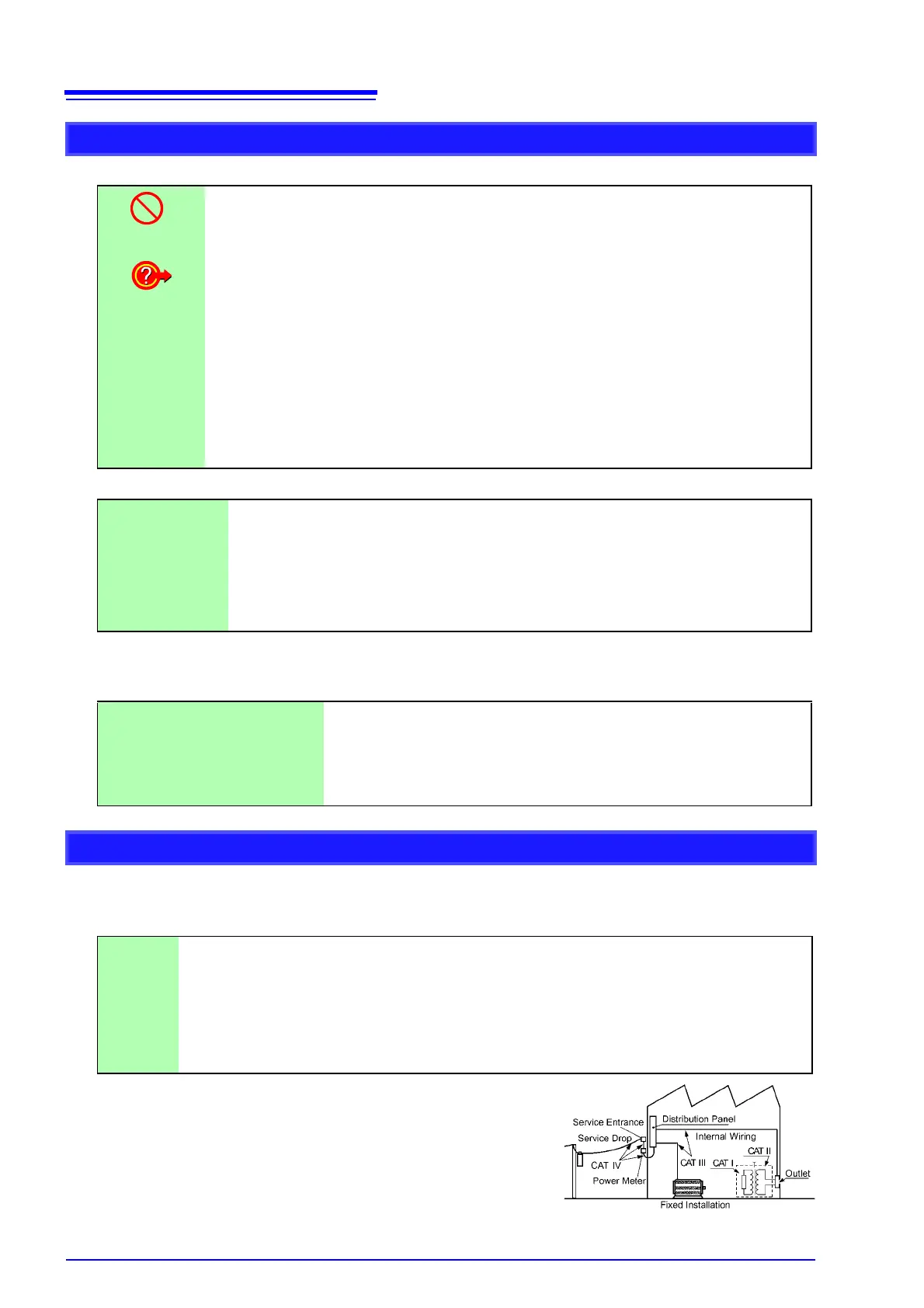 Never use a CAT I measuring instrument in CAT II, III, or IV envi-