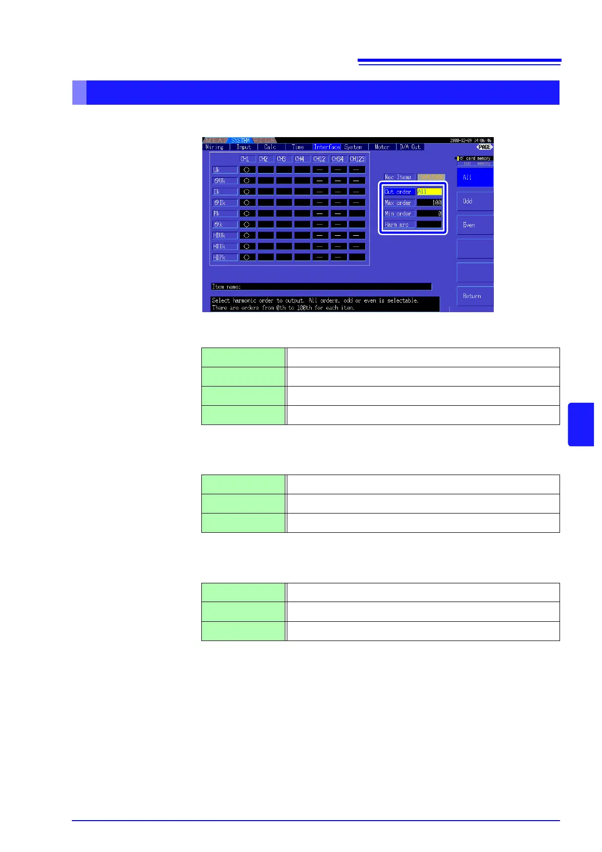 Max order Set the highest order to be output. Settable range is 0 to 100.
