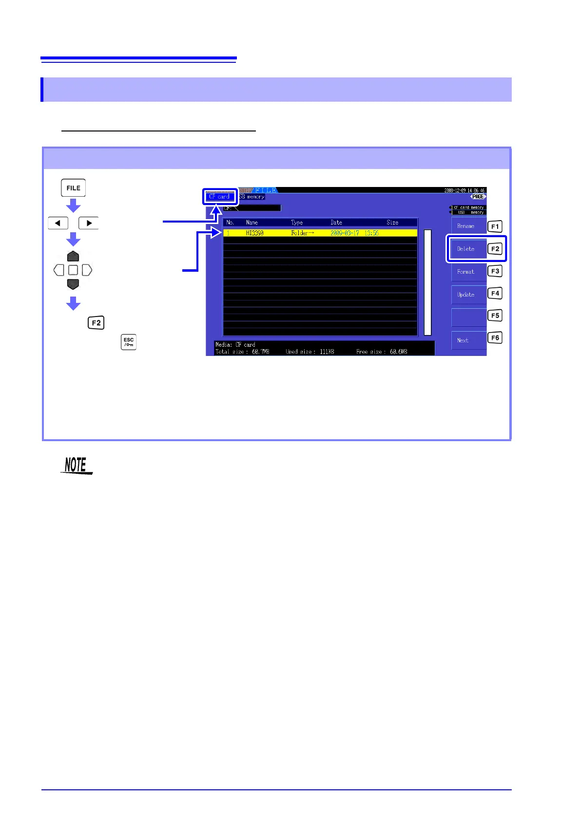 Deleting Procedure (Example: deleting a file (or folder) from a CF card)
