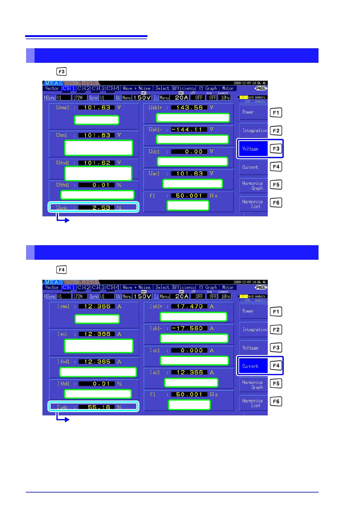When the Wiring mode is 3P3W3M or 3P4W, voltage unbalance Uunb [%] is displayed.