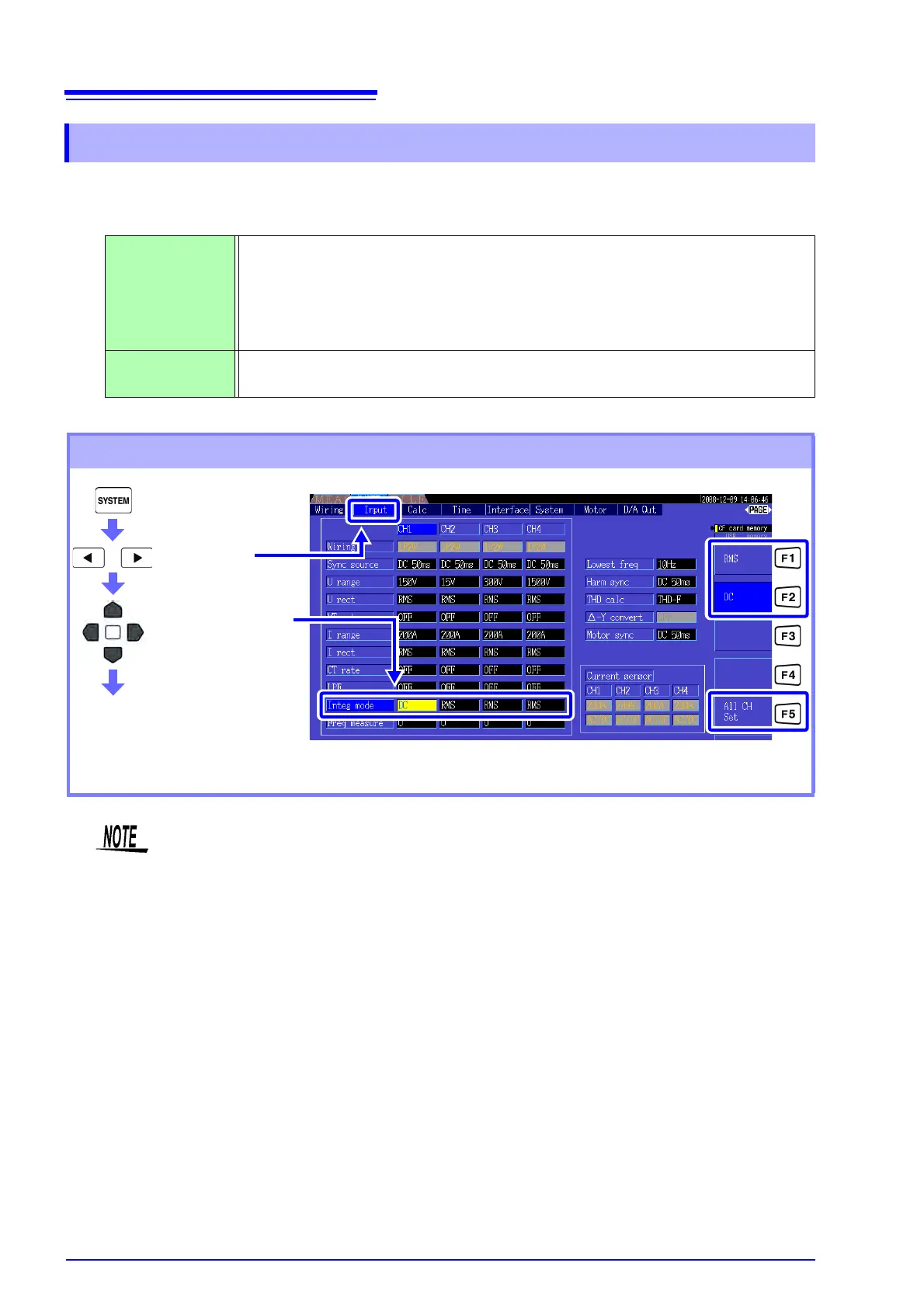 When the RMS integration mode is selected, THD is displayed, and when the DC mode is