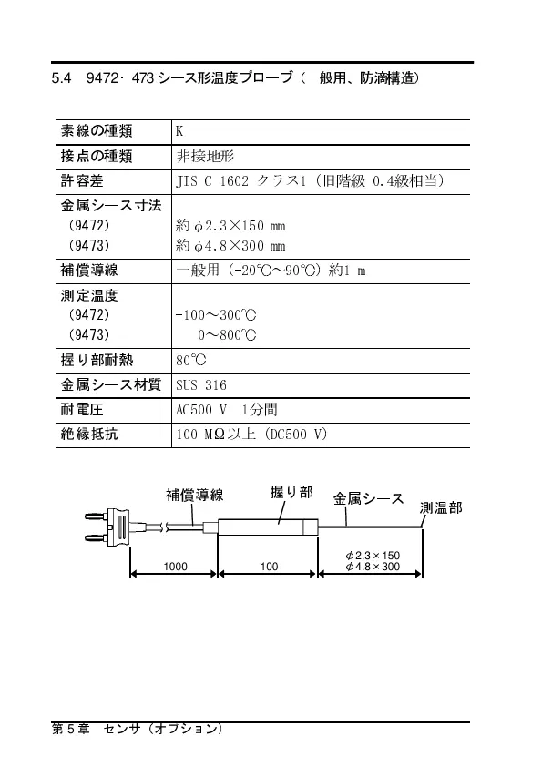 シース形温度プローブ(一般用、防滴構造)