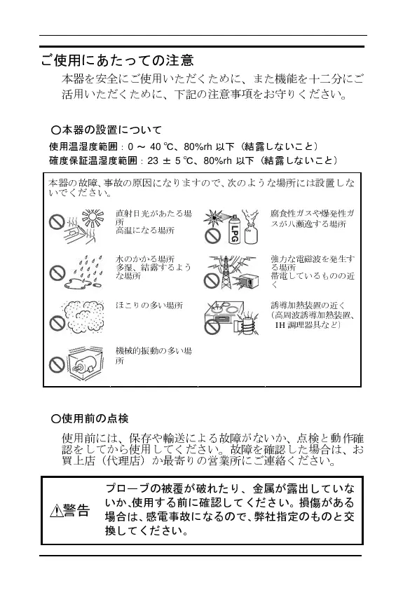 使用前には、保存や輸送による故障がないか、点検と動作確