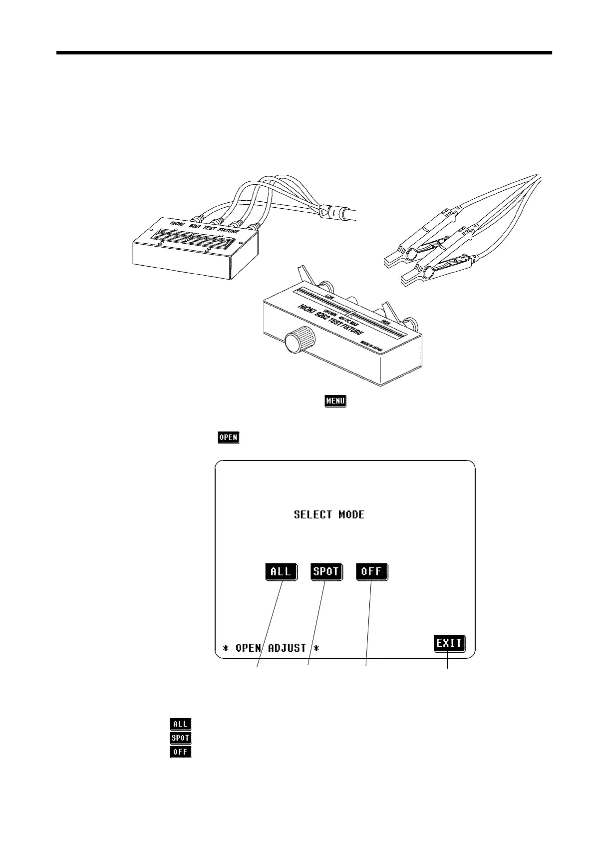 4. Press the key on the Menu screen, and the Open circuit compensation