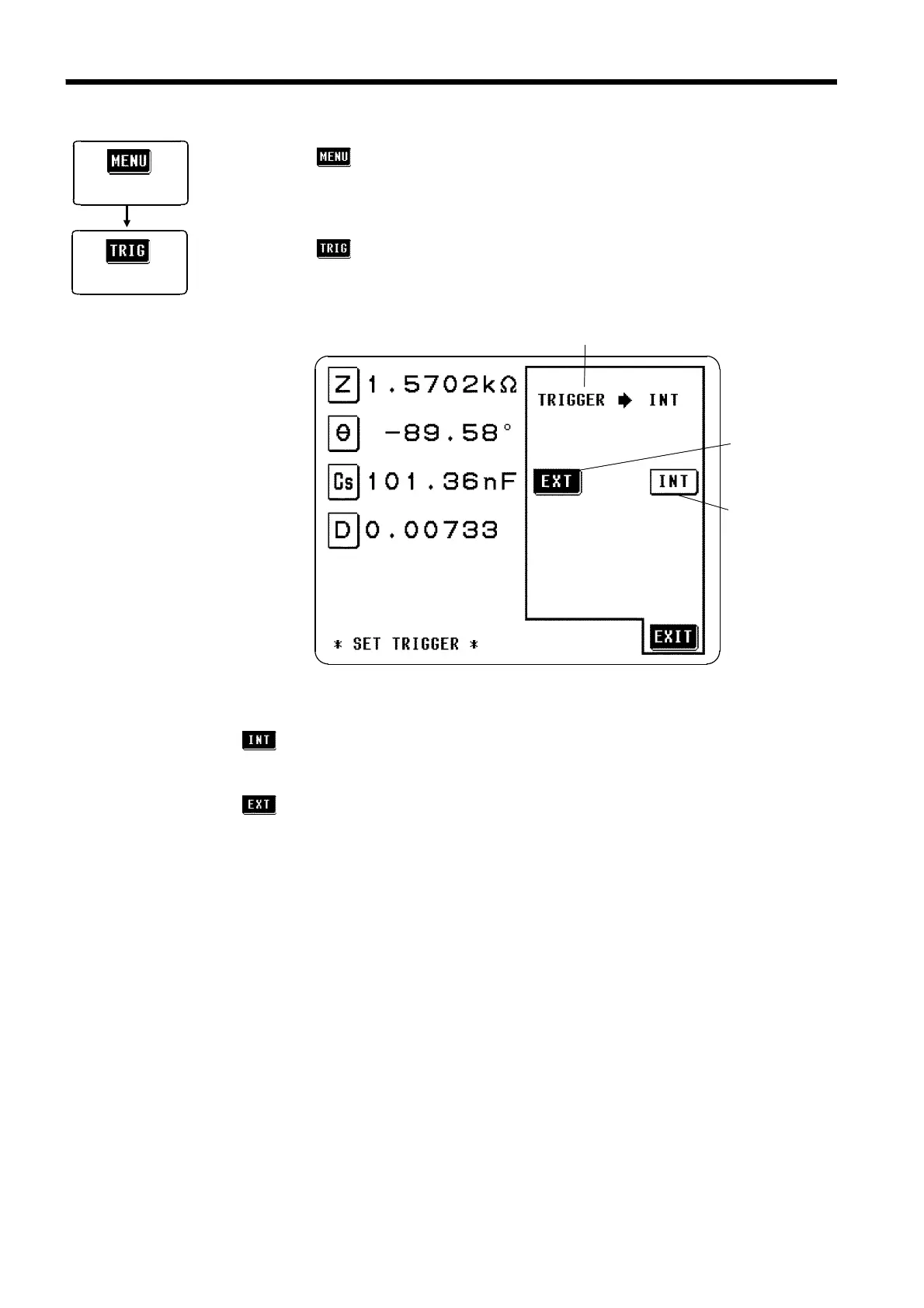 2. Press the key on the Menu screen to display the Trigger setting screen.