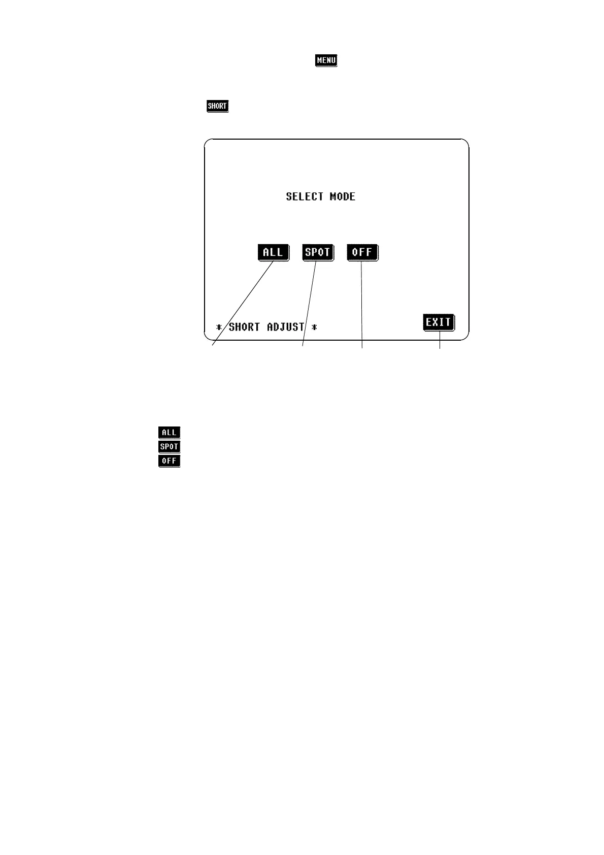 key on the Menu screen, and the Short circuit compensation