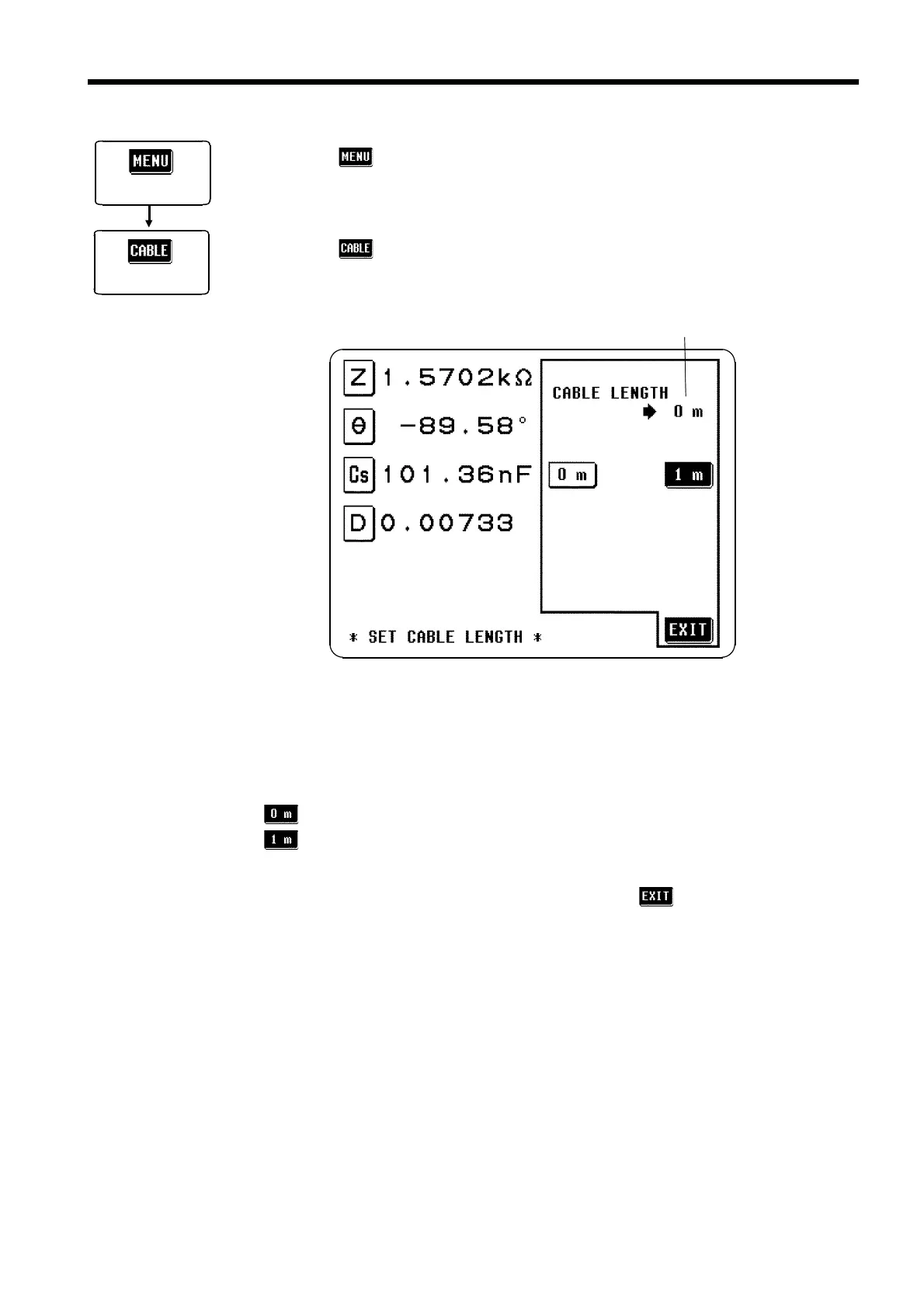 2. Press the key on the Menu screen to display the Cable length setting