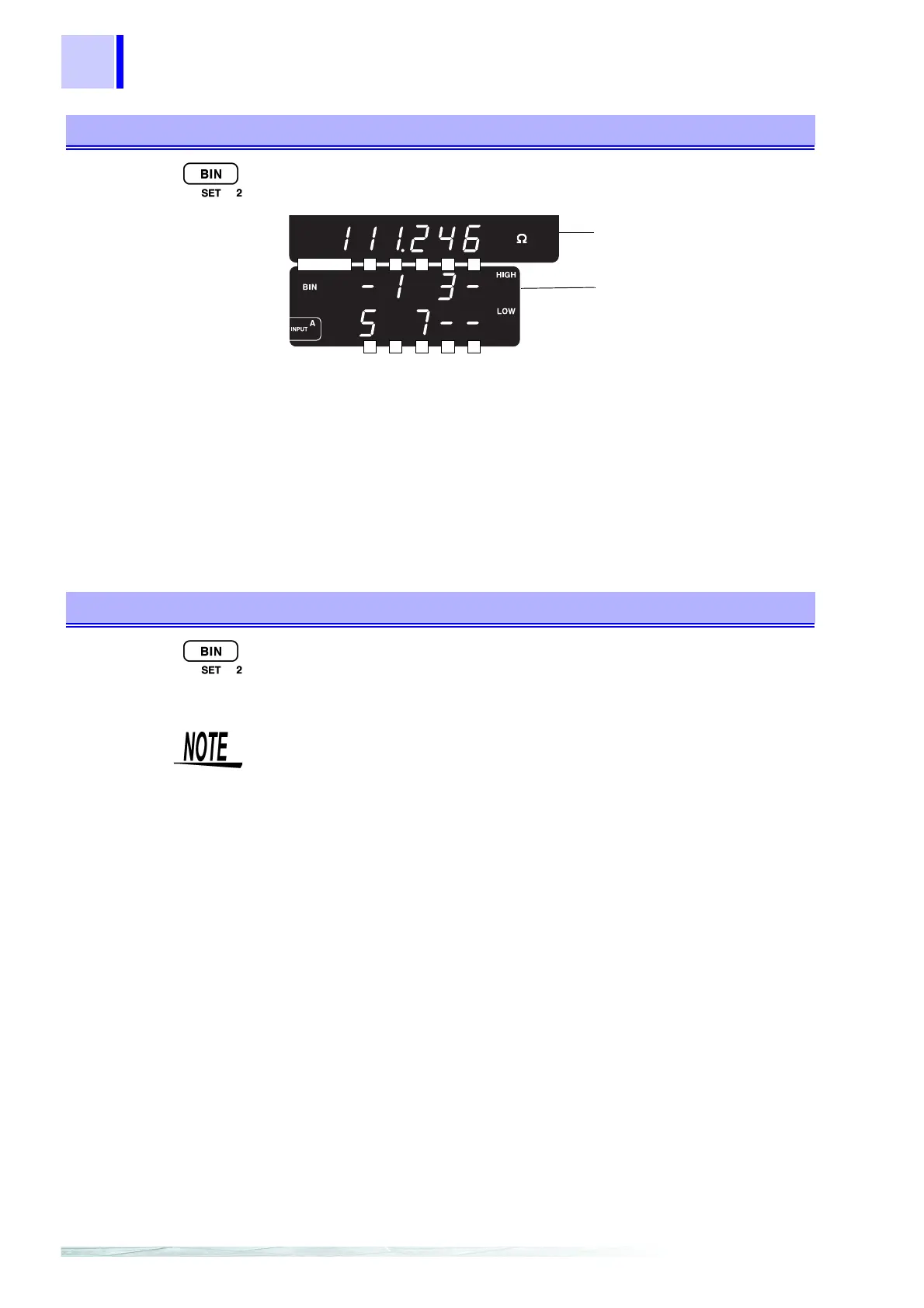 (Displayed when the BIN No. setting is OFF on the Main Display)