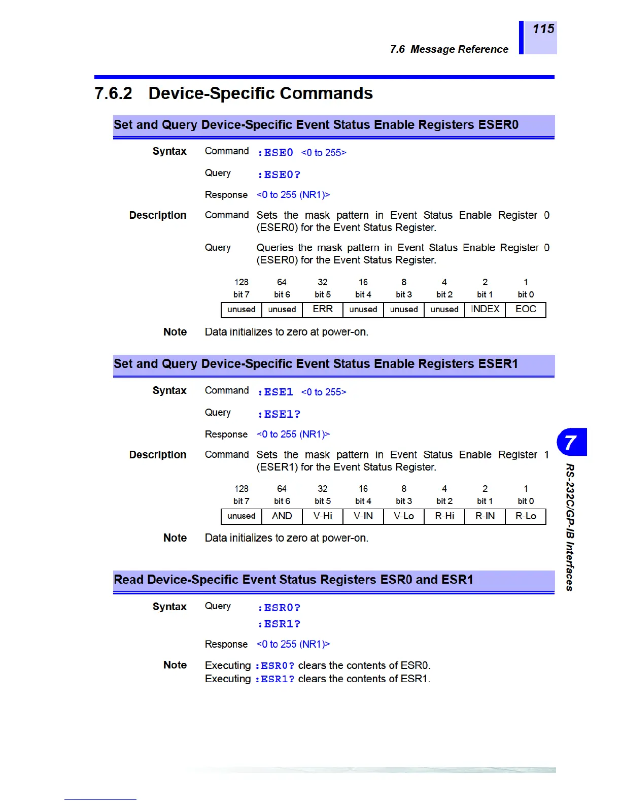 Hioki 3561 - Set and Query Device-Specific Event Status Enable Register ESER0;1; Read Device-Specific Event Status Registers ESR0;1