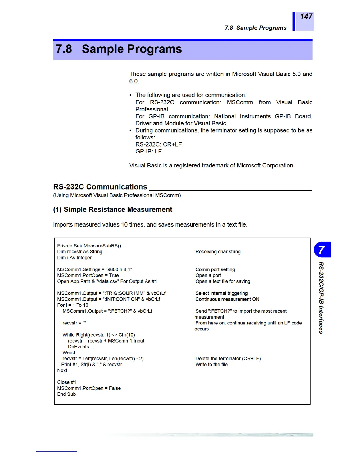 Hioki 3561 - Sample Programs; RS-232 C Communications; Simple Resistance Measurements