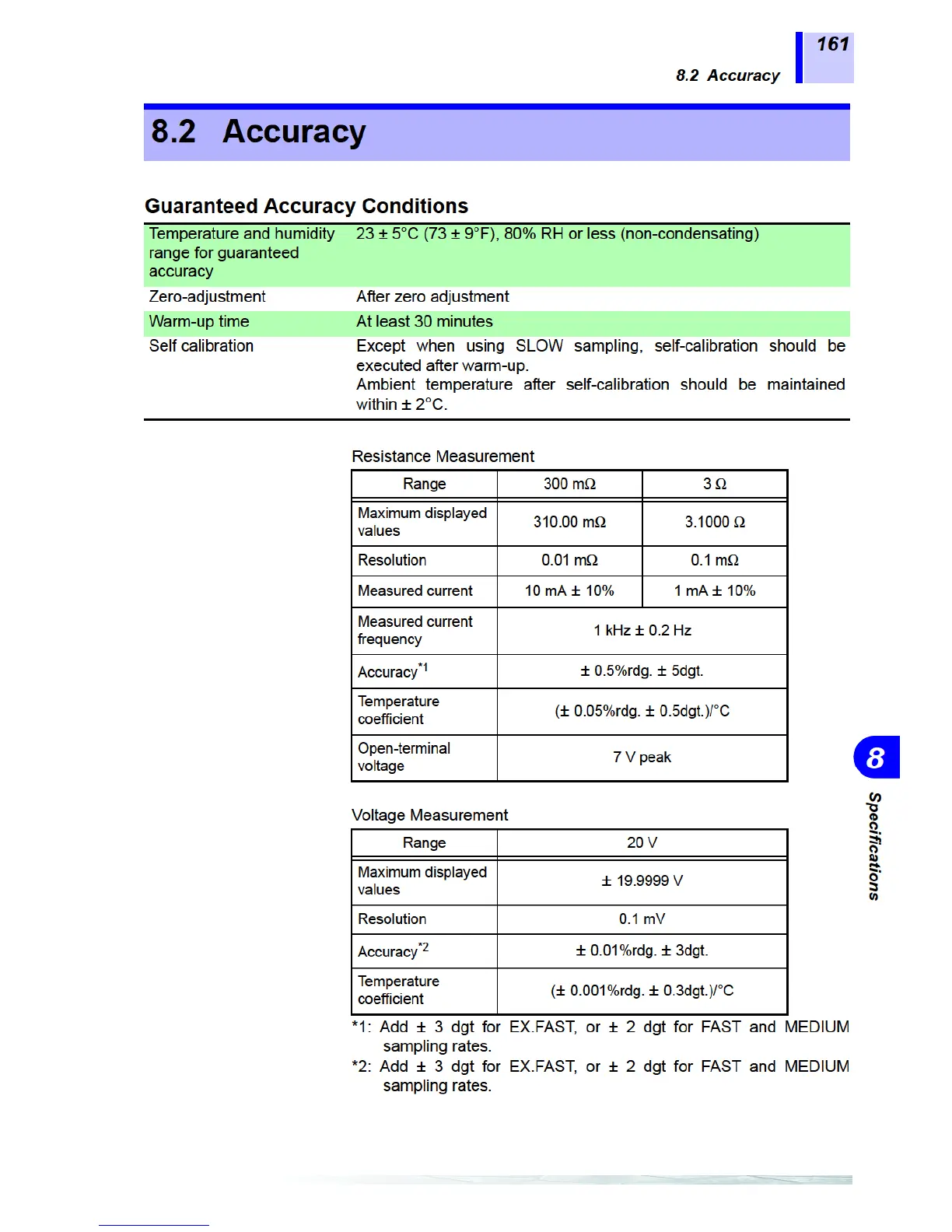 Hioki 3561 - Guaranteed Accuracy Conditions