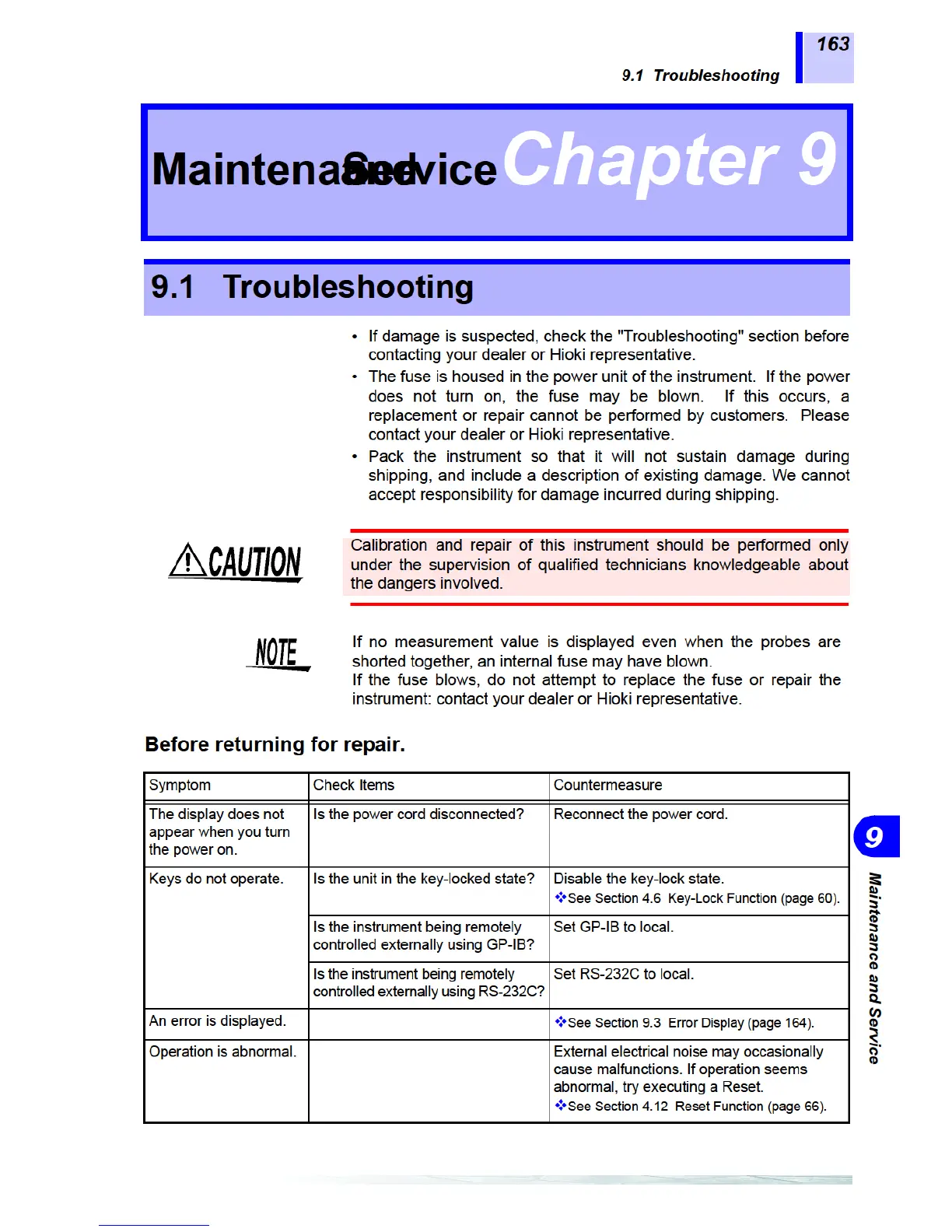 Hioki 3561 - Maintenance and Service; Troubleshooting