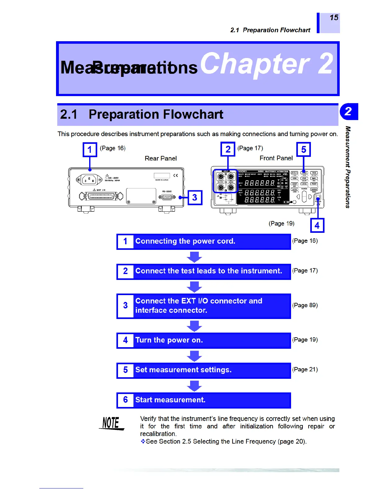 Hioki 3561 - Chapter 2 Measurement Preparations; 2.1 Preparation Flowchart