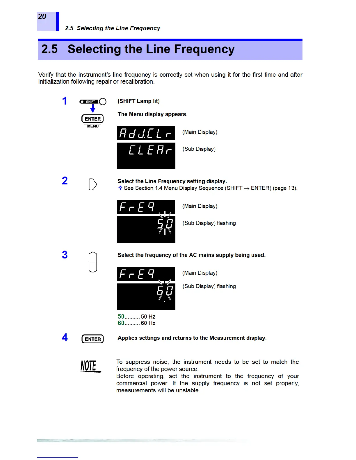 Hioki 3561 - Selecting the Line Frequency