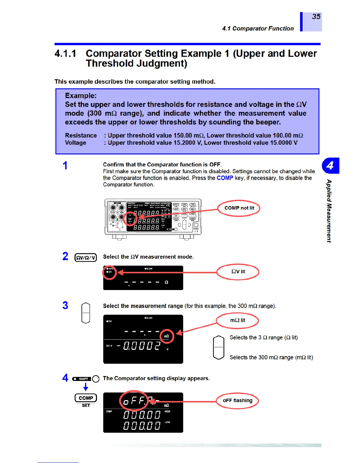 Hioki 3561 - 4.1.1 Comparator Setting Example 1 (Upper and Lower Threshold Judgment)