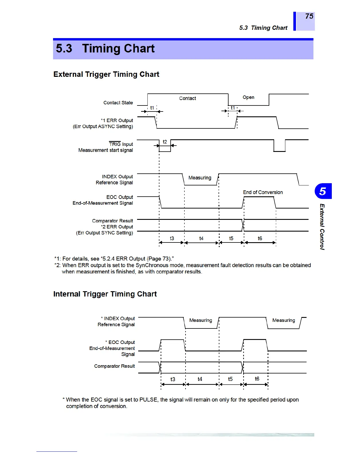 Hioki 3561 - External Trigger Timing Chart; Internal Trigger Timing Chart