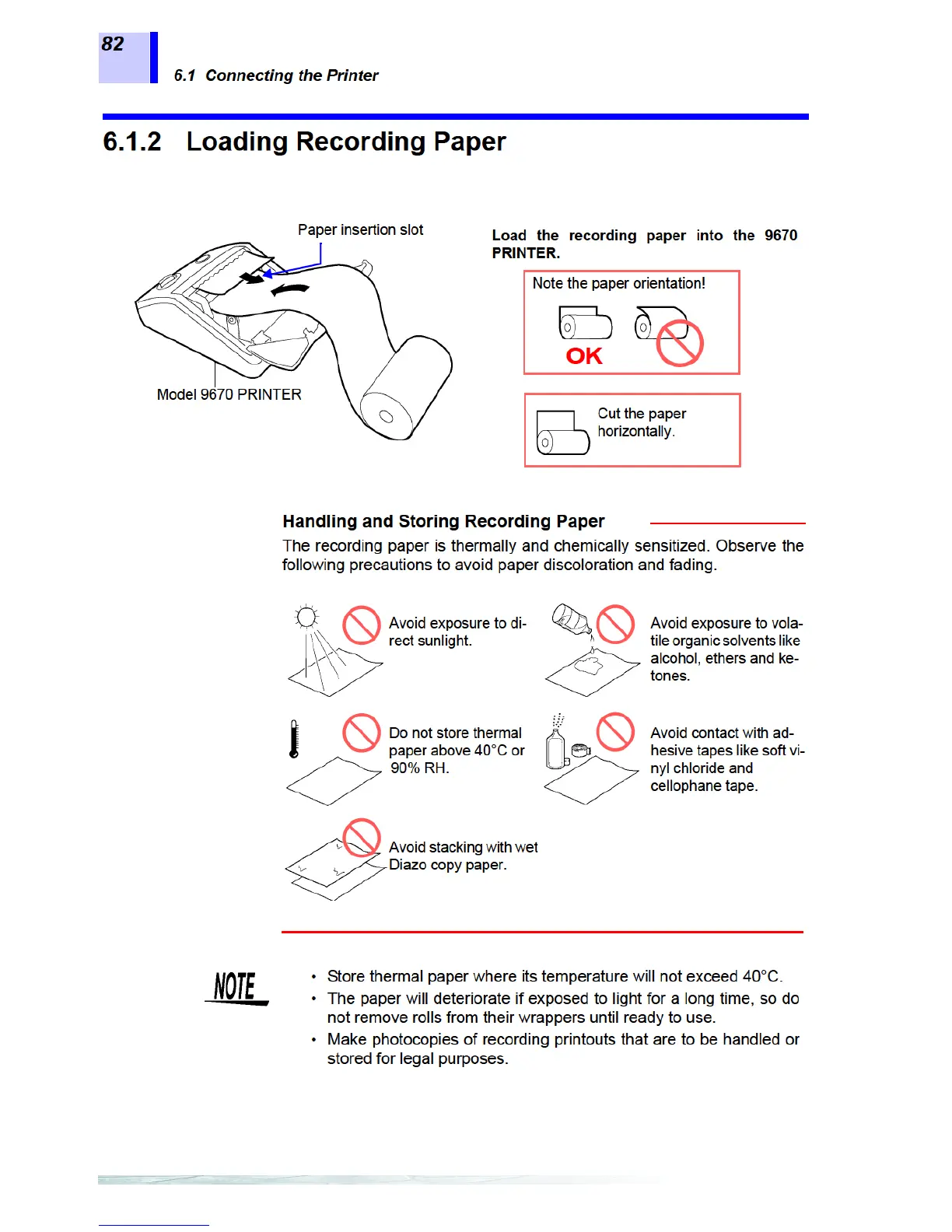 Hioki 3561 - Loading Recording Paper; Handling and Storing Recording Paper