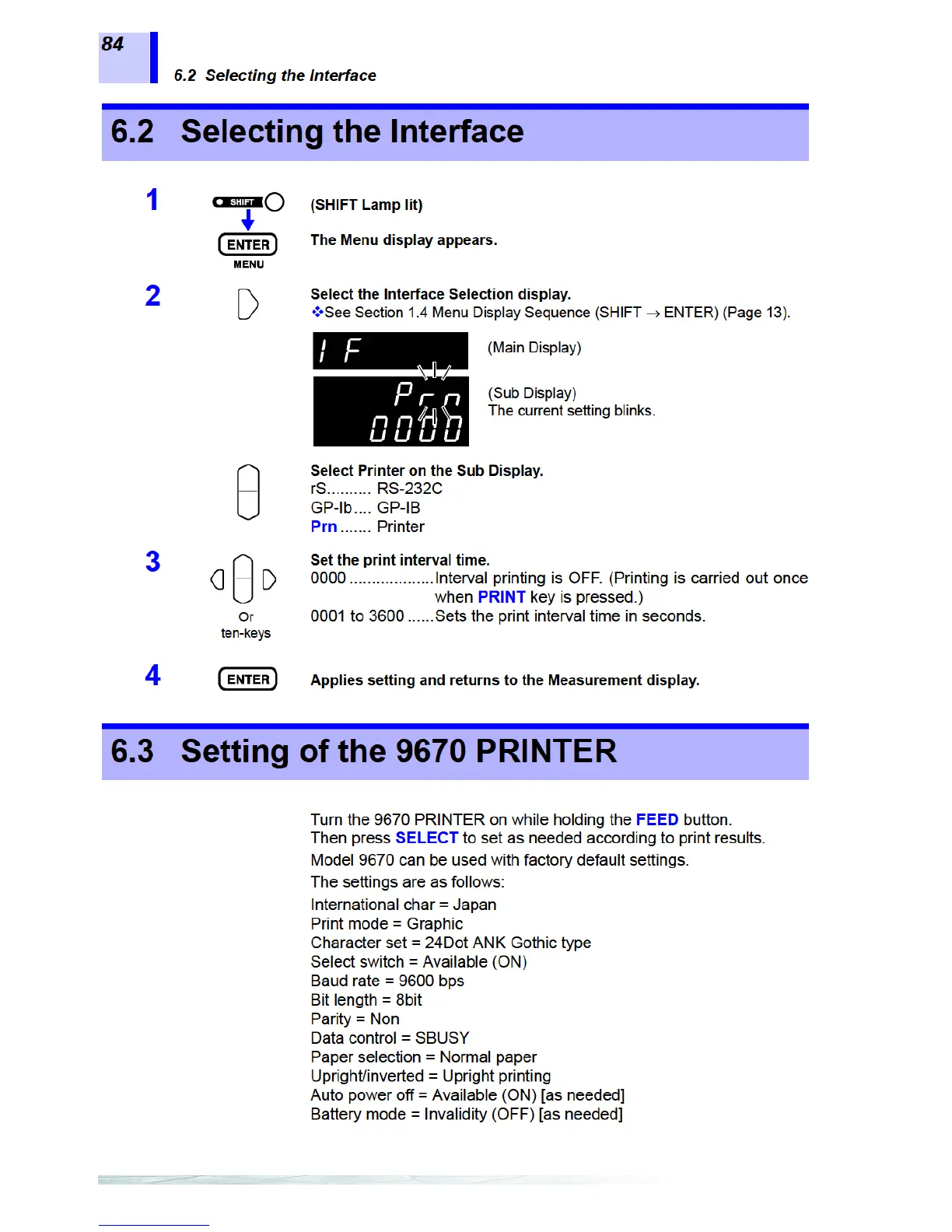 Hioki 3561 - Selecting the Interface; Setting of the 9670 Printer