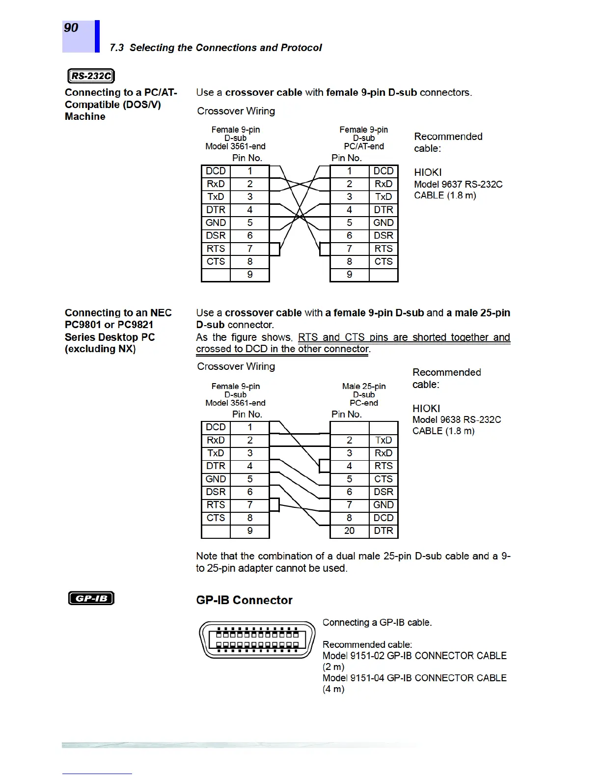 Hioki 3561 - Connecting to a PC;AT-Compatible Machine; Connecting to an NEC PC9801 or PC9821 Series Desktop PC