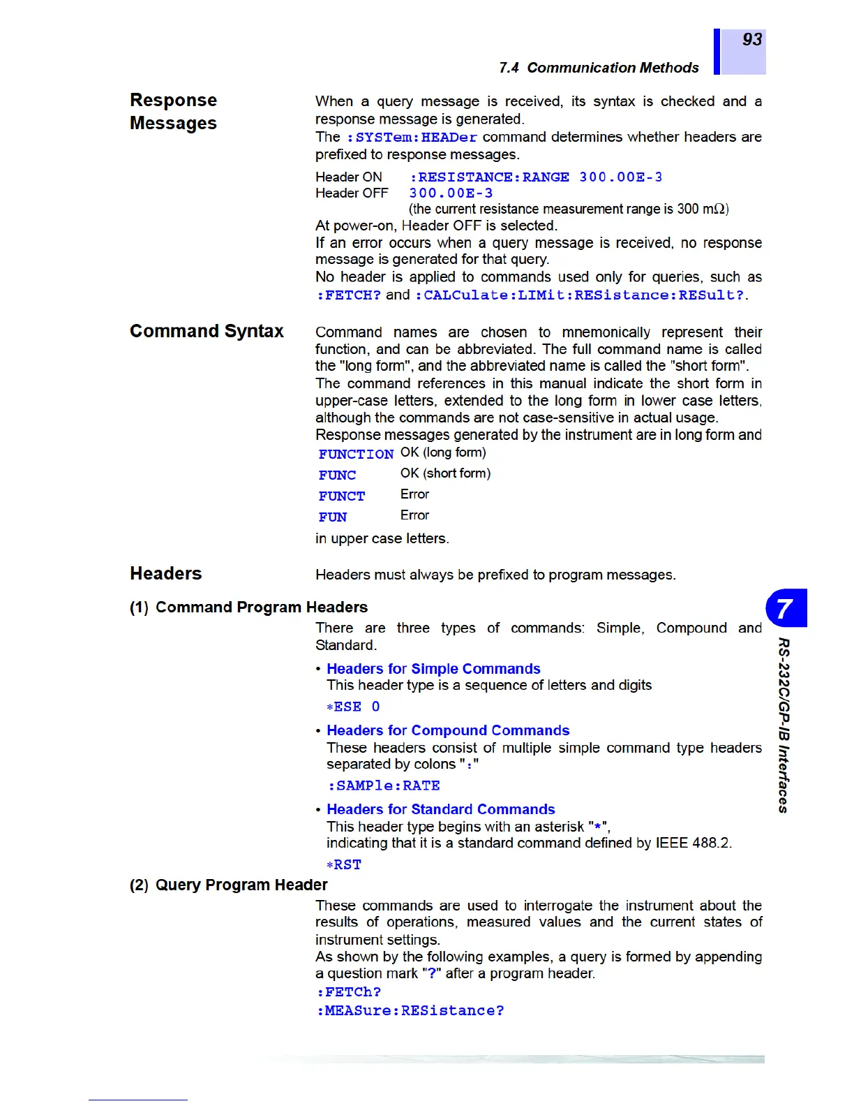 Hioki 3561 - Response Messages; Command Syntax; Command Program Headers; Quer Program Header