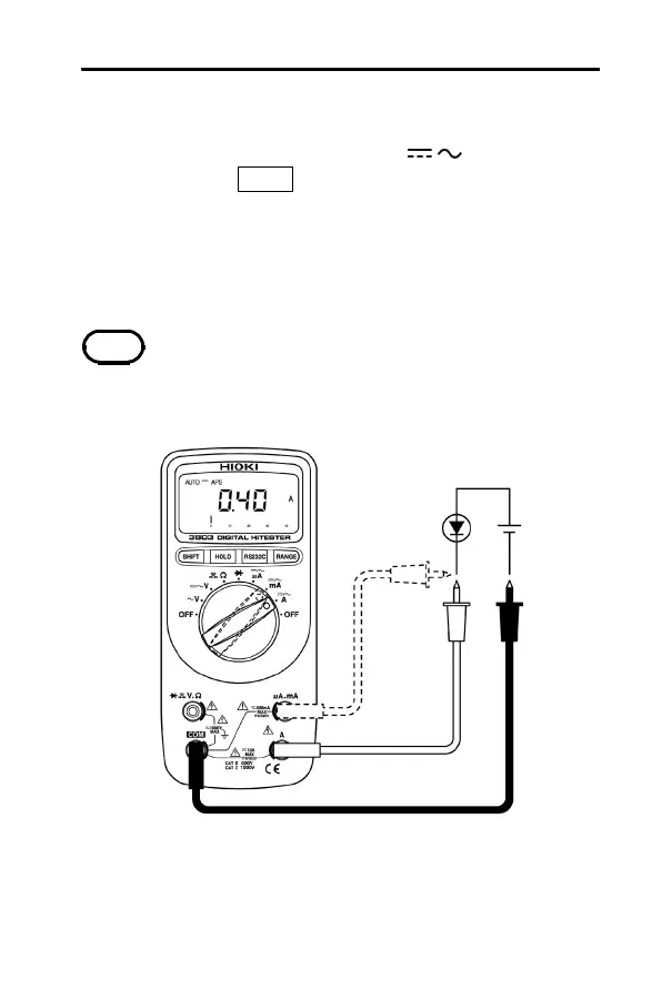 (4) Touch the test leads to the test points and read