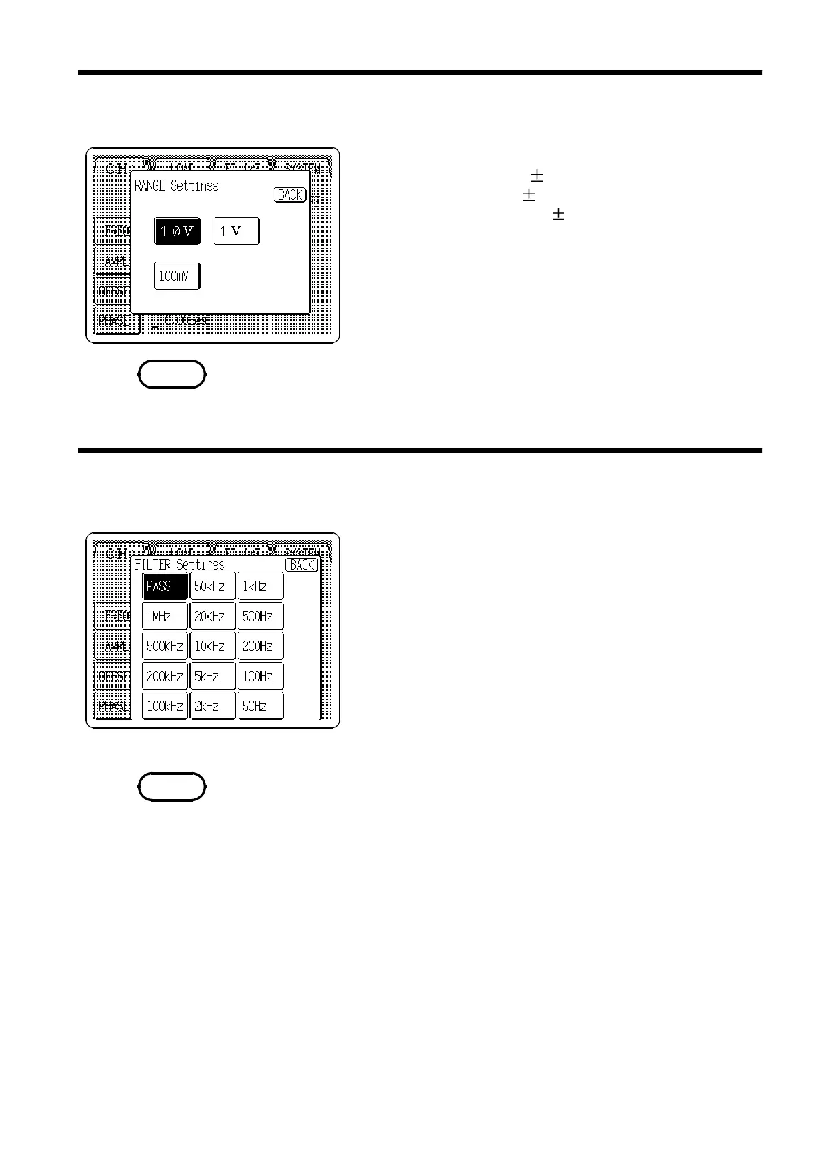 FILTER Settings window.