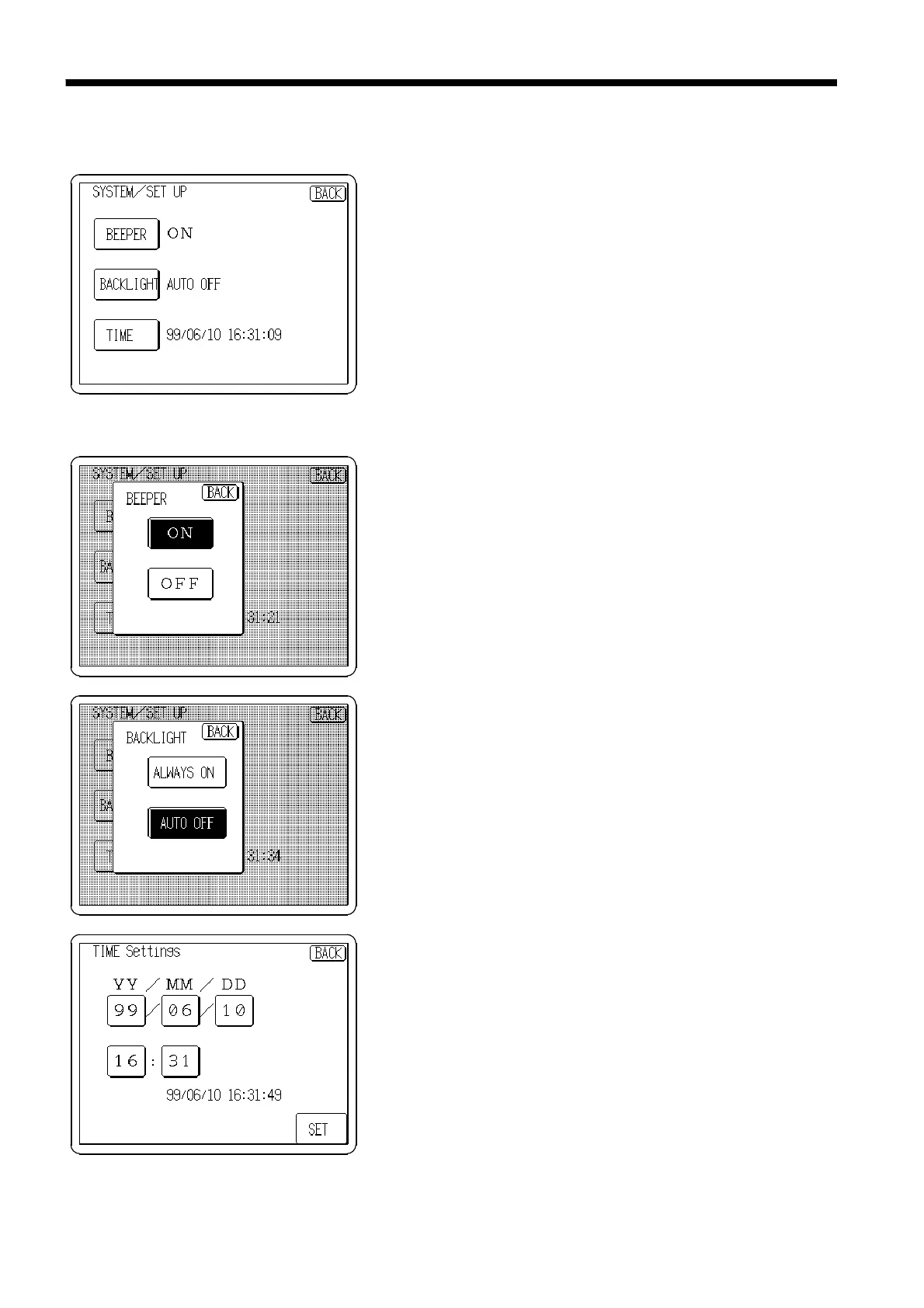 automatic backlight off and time can be set.